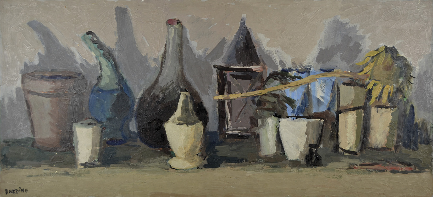 DARZINO BRUNO Treviso 1922 - 1984 Natura morta olio su tela 50x110 firma in basso a sinistra