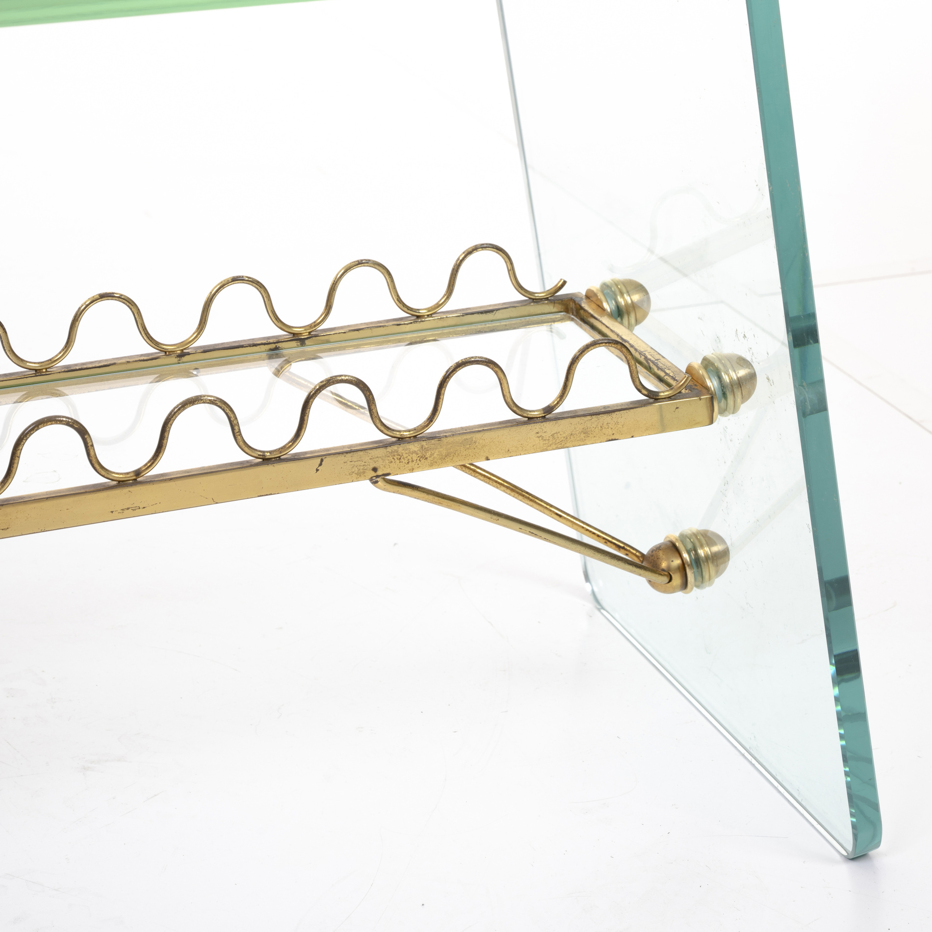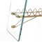 Ripiano e sostegni in cristallo molato trasparente, dettagli e decori in ottone