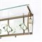 Struttura in ottone e metallo patinato, ripiano e dettagli in cristallo molato trasparente e cristallo specchiato