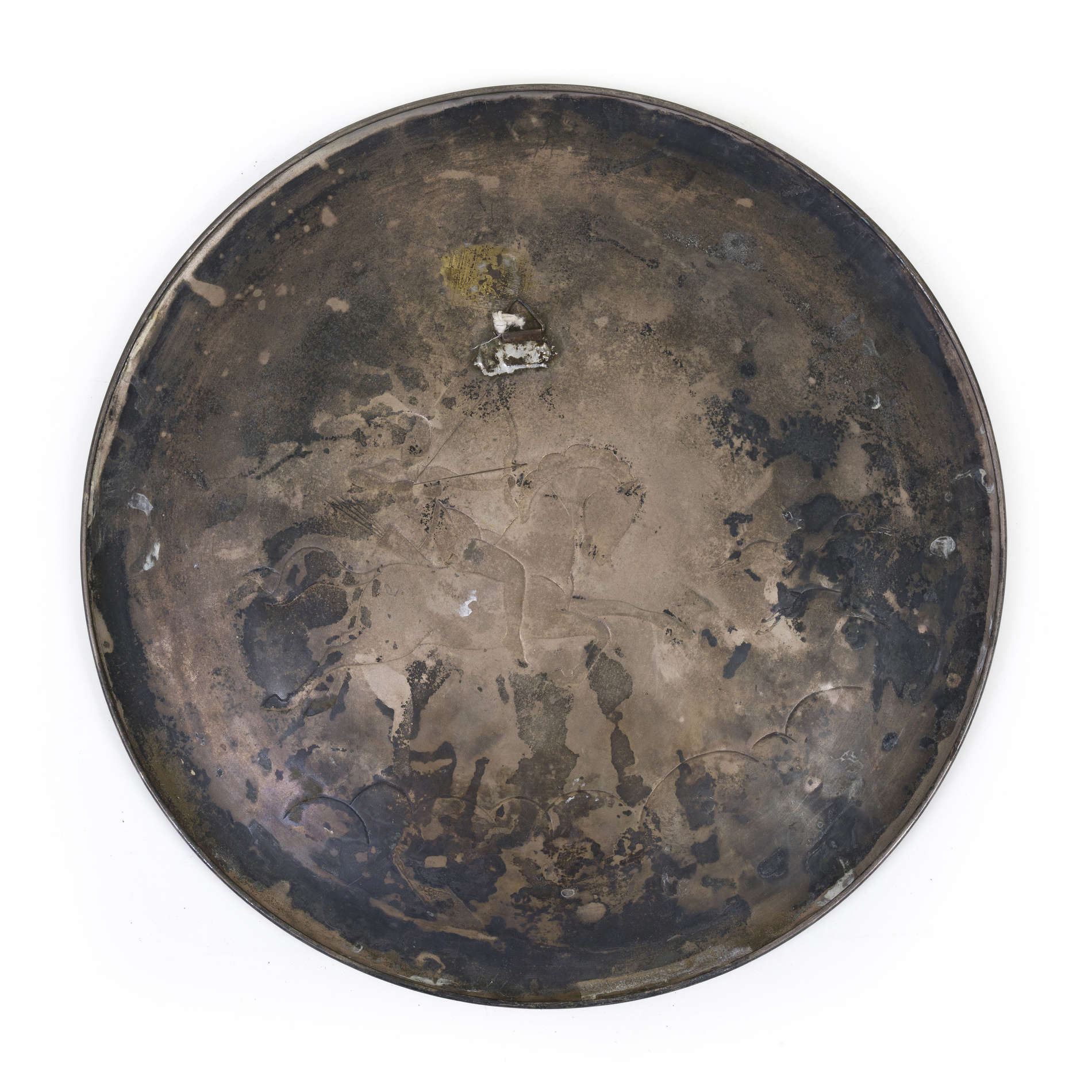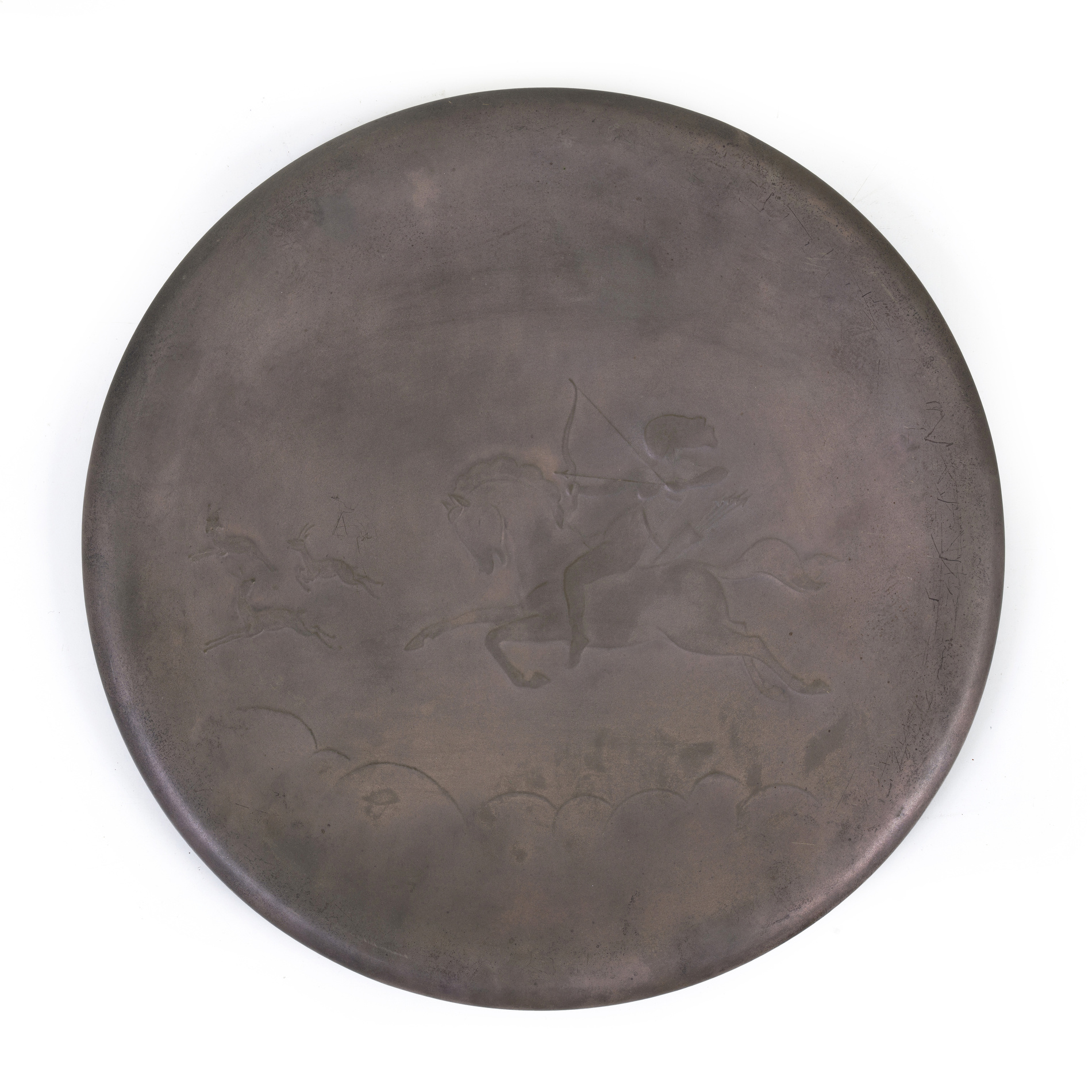 A plate with relief decoration depicting a hunting scene