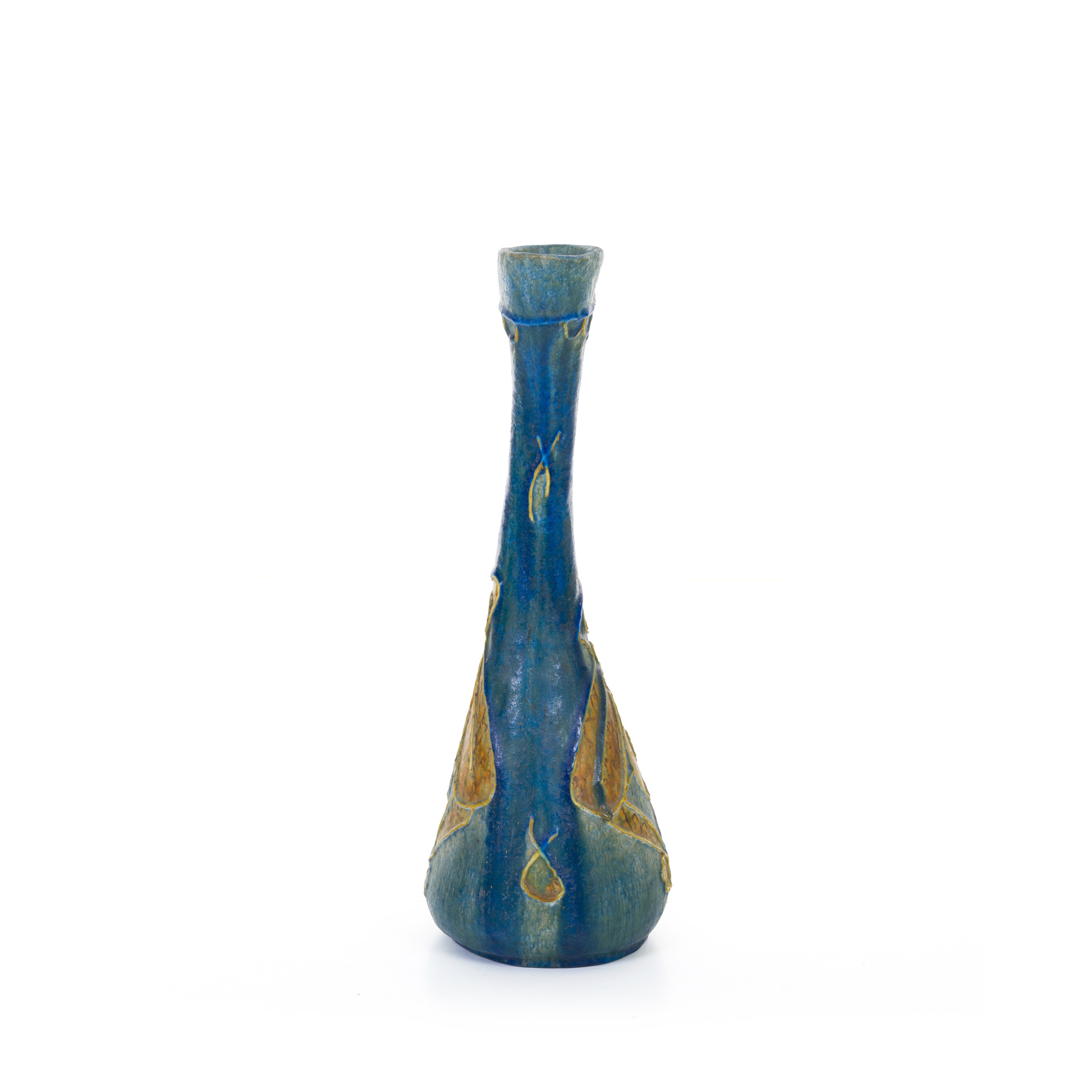 Maiolica a smalti policromi nei toni del blu e dell'arancione