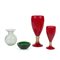 Due alti calici in vetro rosso con decoro di foglia oro, Prod. Italia, 1980 circa, 35 x 49 cm