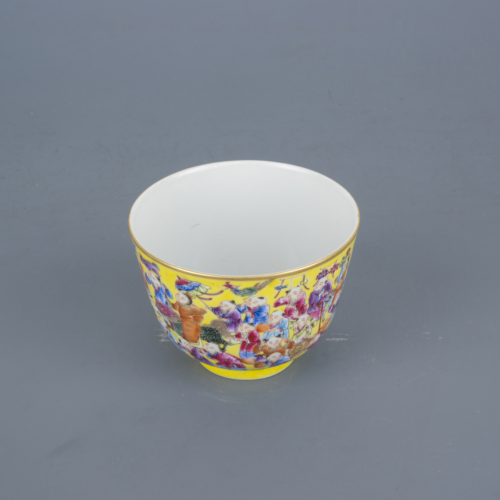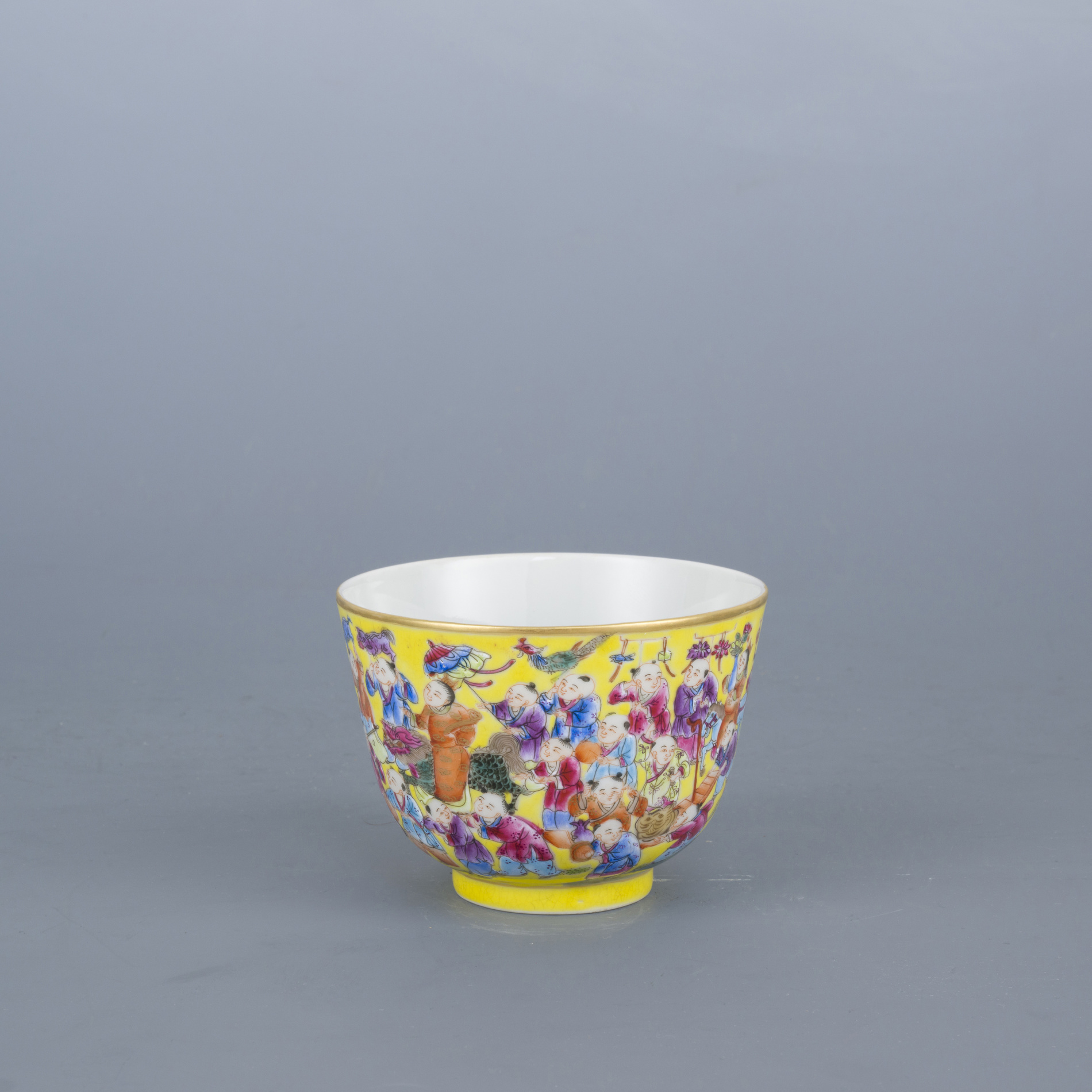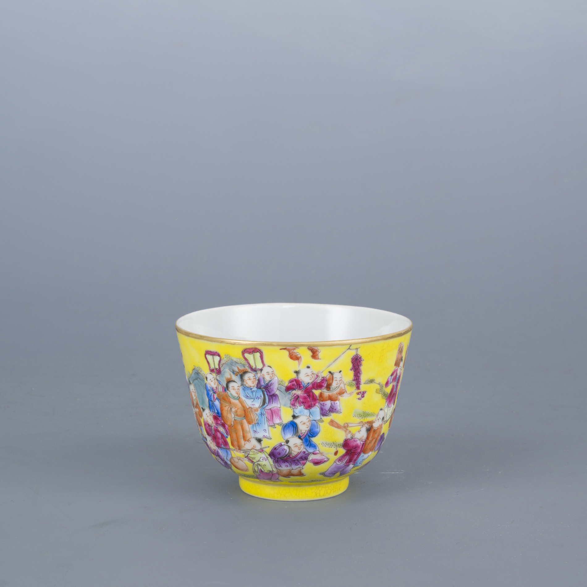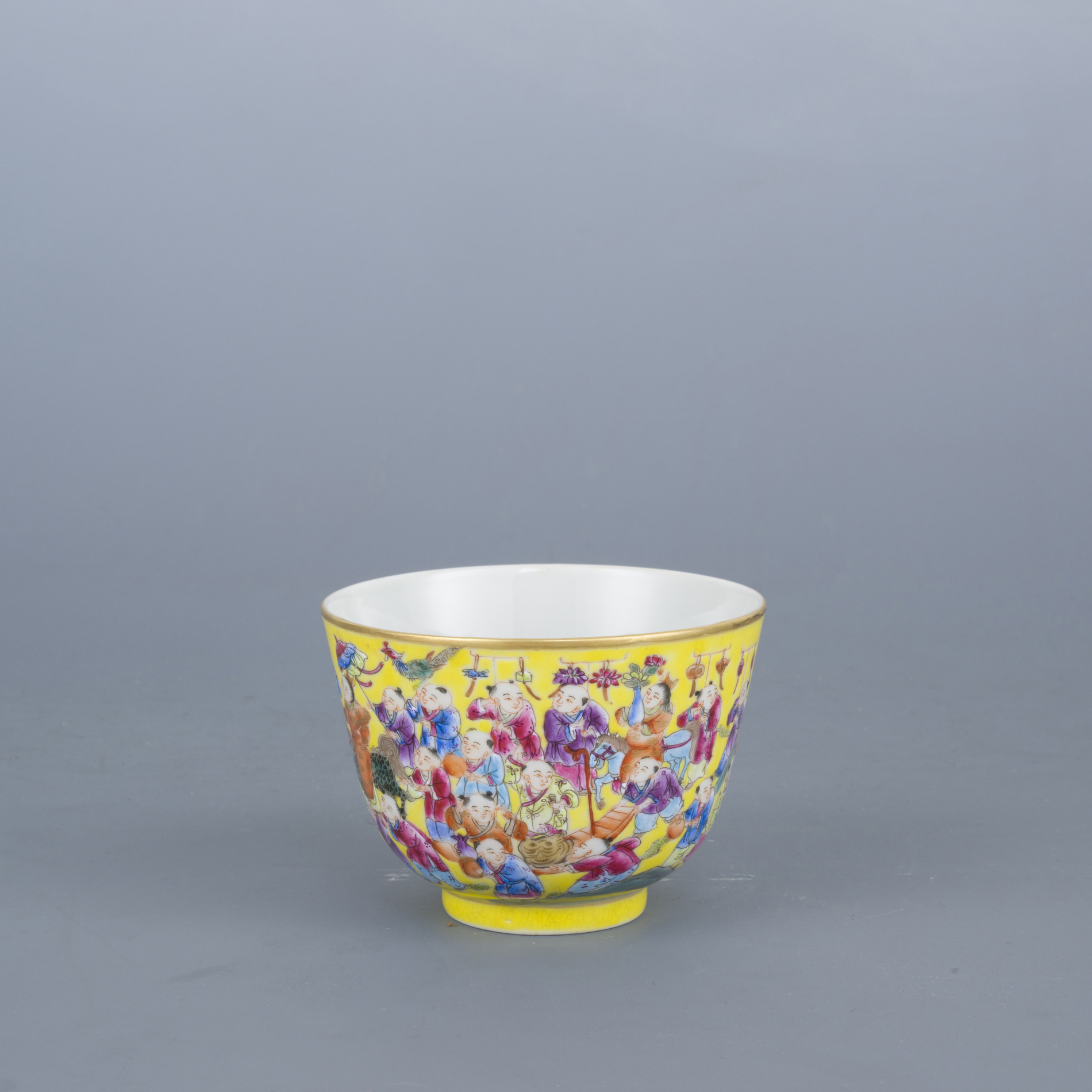 One in polychrome porcelain with scenes of daily life, animals, and figures in the round, China, Qing Dynasty, Tongzhi period (1862 - 1874), mid-19th century, marked and Tongzhi Period