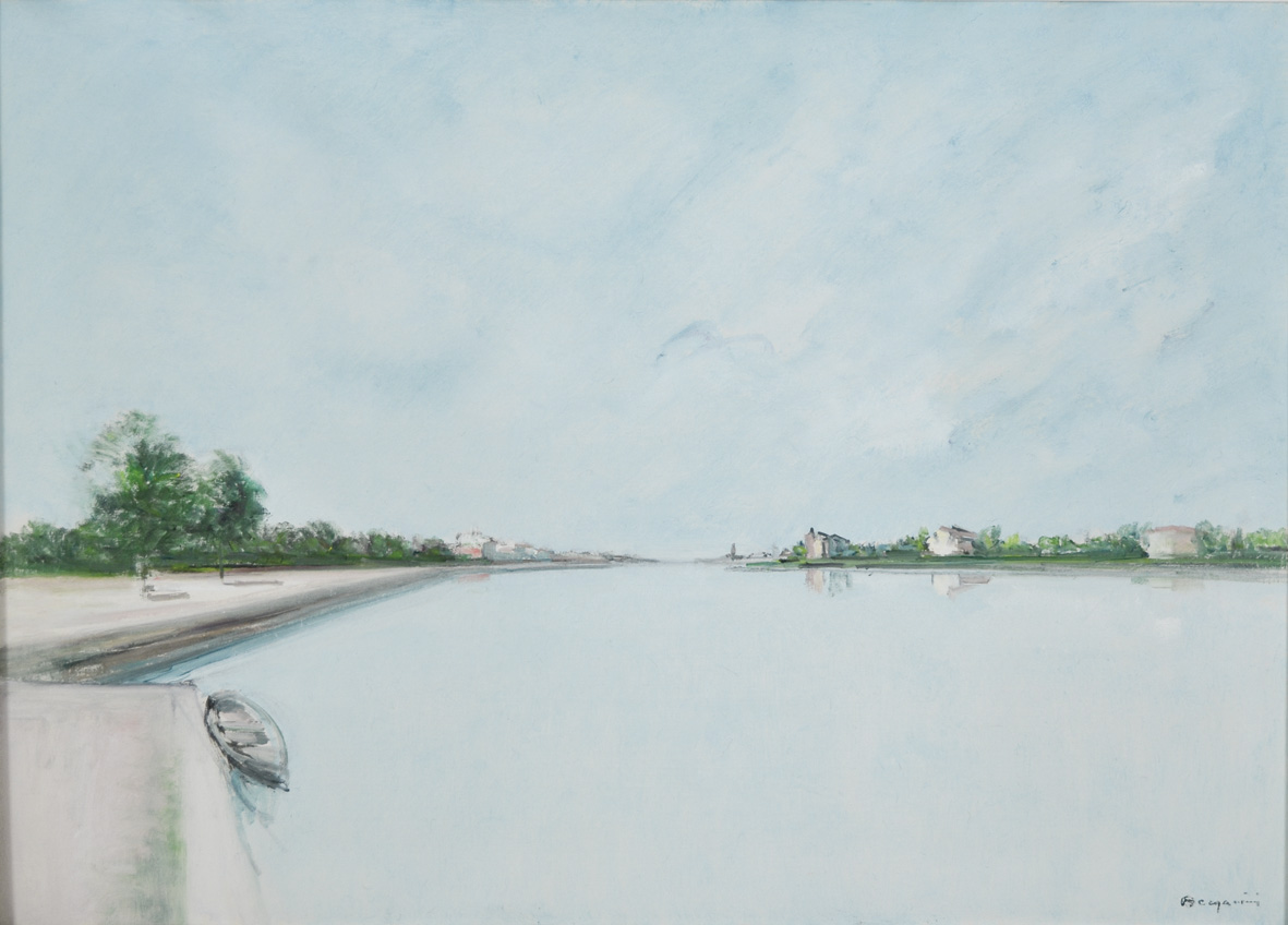 BERGAMINI ALDO Bottrighe 1903 - Venezia 1981 Paesaggio lagunare olio su tela 50x70 firma in basso a destra esposizioni: Galleria d'Arte Moderna Piranesi Mogliano Veneto - etichetta al retro