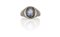 Anello chevalier in platino con zaffiro inciso a stemma nobiliare con corona a 9 punte croce e tre stelle cartiglio con inciso 'Fide et Gladio'