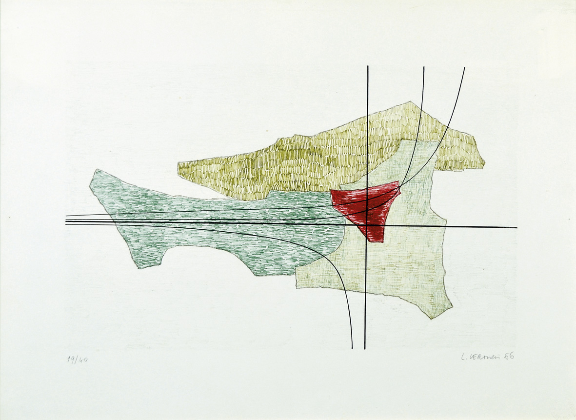 VERONESI LUIGI Milano 1908 - 1998 senza titolo 1966 litografia es. 19/40 50x70 firma e data in basso a destra tiratura in basso a sinistra timbro a secco il Torchio Milano in basso a destra