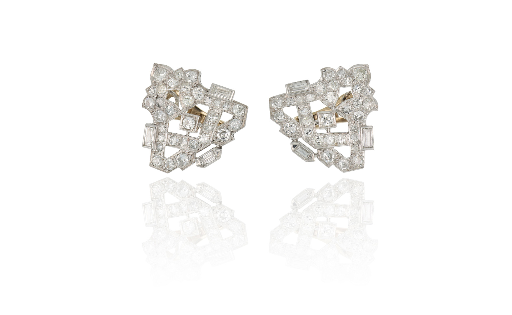 CUSI - Orecchini in platino di forma triangolare con diamanti per stimati 2 0 ct e chiusura a clip in oro.