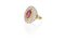 Anello in oro giallo e bianco di forma ovale un rubino taglio navette di stimati ct. 2 0 è circondato da due file di diamanti taglio brillante per complessivi ct. 1 60 ca.