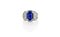 Elegante anello di manifattura anni '50 realizzato in oro bianco e diamanti taglio brillante sul gambo a tre parti ad accompagnare questo inusuale zaffiro fiordaliso taglio smeraldo ct. 10 0 ca. di provenienza Cylon non riscaldato.