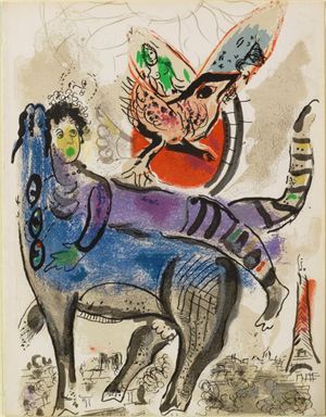 CHAGALL MARC Vitebsk 1887 - 1985 Saint-Paul de Vence Viaggio fantastico 1967 Litografia originale in 18 colori per XX Siecle n.29. Morulot, Parigi cm 31x24 Original lithograph in color