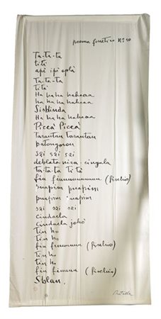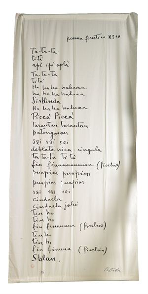 ROTELLA MIMMO Catanzaro 1918-2006 Milano Poema fonetico n.10 Stampa, cm 250x120, es.2/8 Firma in basso a destra e tiratura in basso a sinistra Timbro Conz editore, Verona Bibl.: L'ora della lucertola, edizioni Spirali, pubblicato a pag.447 a piena pagina Print Firma circulation in the lower right and lower left