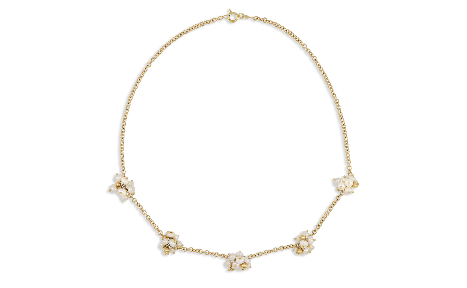 Girocollo in oro a catena con inserti di perline a grappolo.