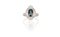 Anello a margherita in oro bianco un contorno movimentato di diamanti taglio rotondo e taper disposti su piu' livelli ct. 1 10 ca circonda uno zaffiro taglio ovale di ct. 1 70 ca.