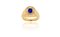 Antico anello da mignolo in oro giallo la corposa manifattura è decorata con uno zaffiro ovale al centro di ct. 0 70 ca. e un contorno di diamanti taglio antico per ct. 0 60 ca.