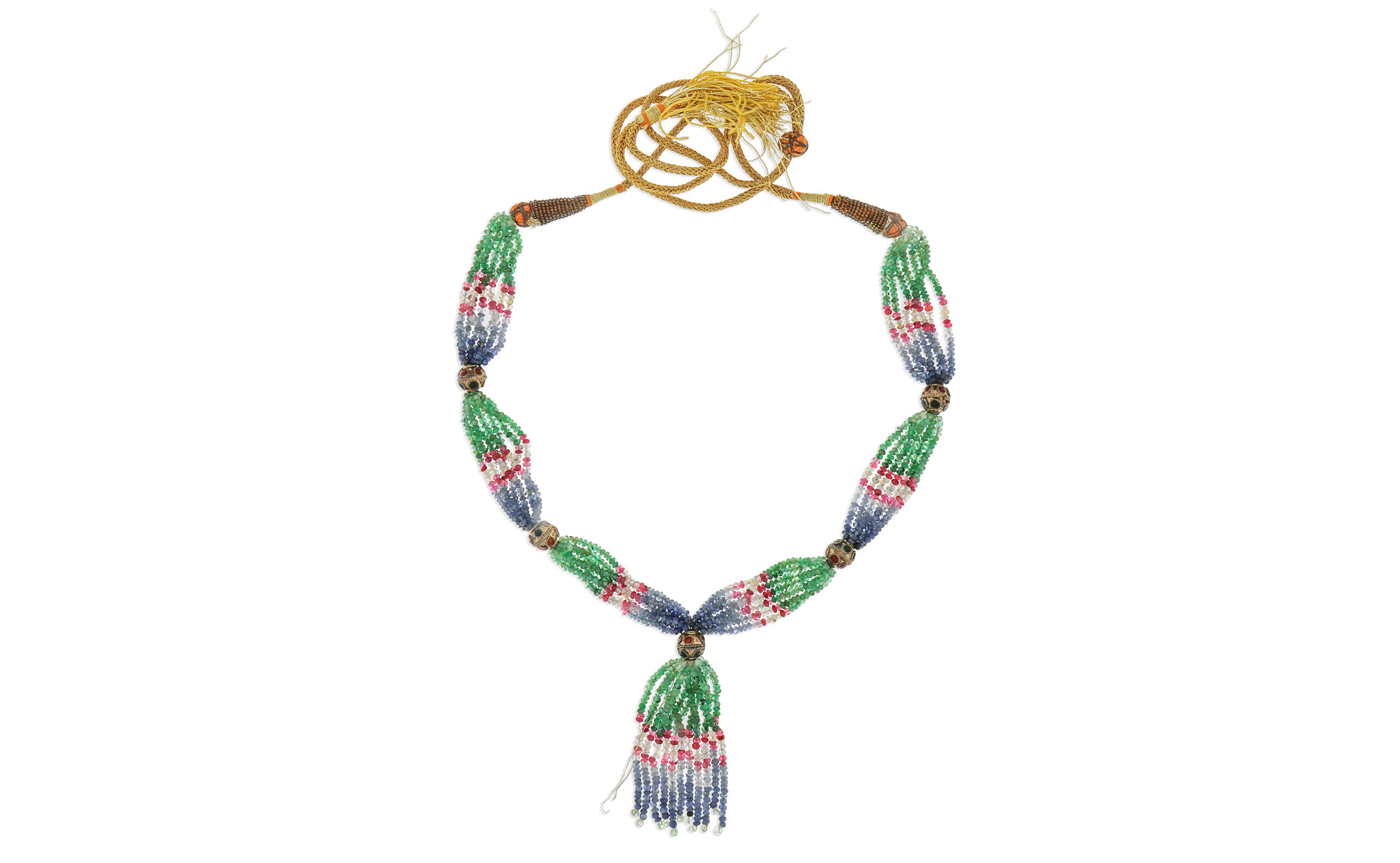 Collana indiana multigem composta da circa 190 ct di zaffiri rubini e smeraldi.