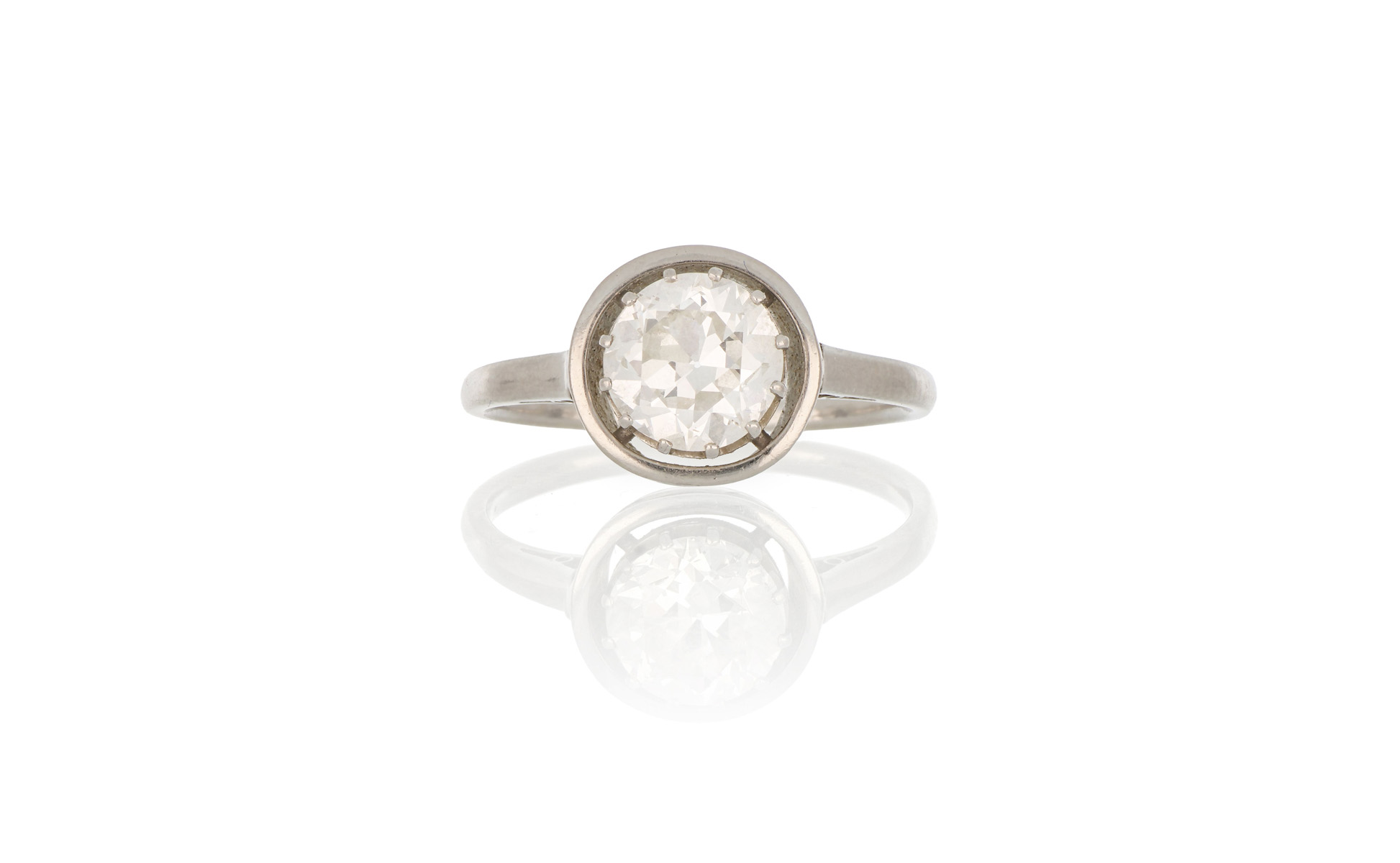 Anello solitario in oro bianco con diamante di forma rotonda taglio antico di stimati 1 40 ct gemma internamente pulita (VS) (range colore stimato I/J).