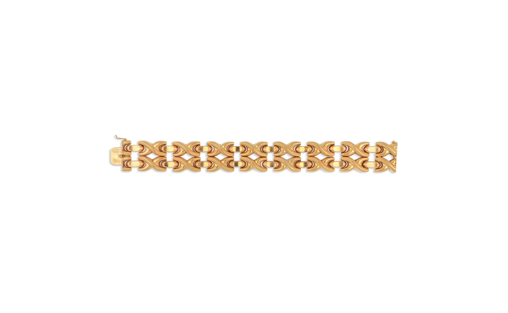 Bracciale a settori in oro rosa realizzato in canna vuota con parti geometrice snodate e ricorrenti.