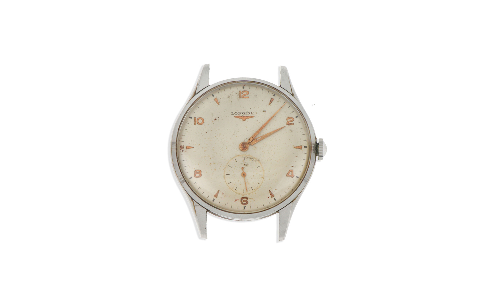 LONGINES Jumbo orologio da uomo in acciaio con cinturino in pelle e fibbia non originale animato da movimento meccanico a carica manuale quadrante crema con numeri arabi alternati ad indici a cuneo piccoli secondi ad ore 6.