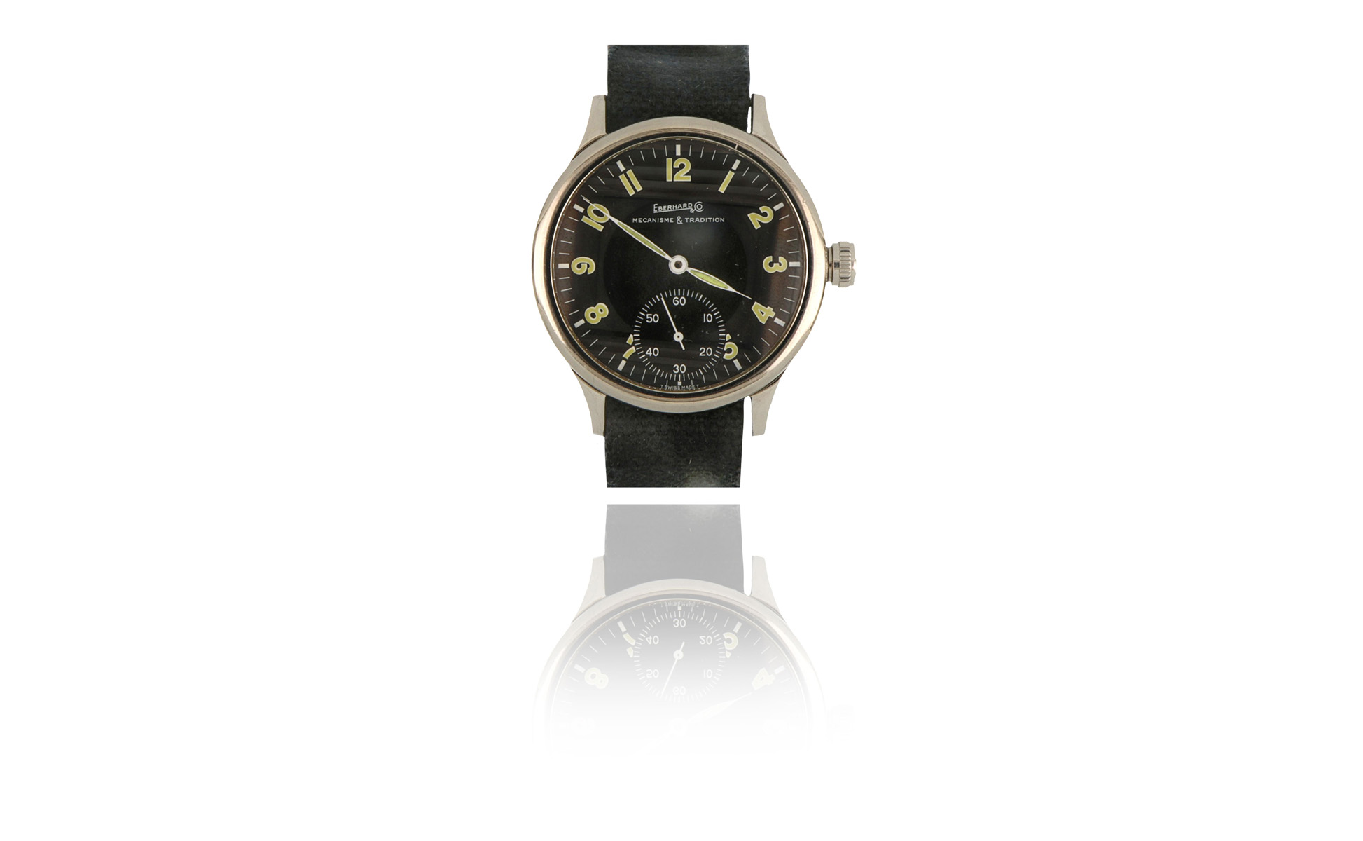 EBERHARD - TRAVERSETOLO orologio da uomo con cassa in acciaio Referenza 21016 animato da movimento meccanico a carica manuale calibro ETA 6498 quadrante nero indici arabi sfere leaf luminescenti quadrante dei piccoli secondi ad ore 6.