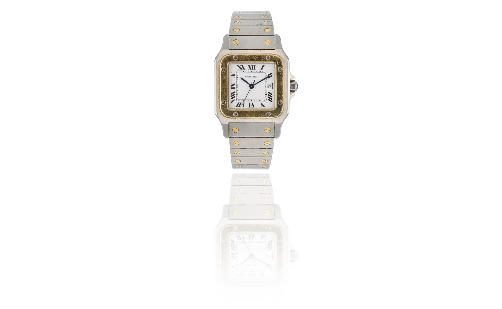 CARTIER SANTOS - Orologio da polso con cassa e cinturino in acciaio e oro con movimento meccanico a carica automatica Referenza 1172961 dimensioni cassa 29 x 41 mm.
