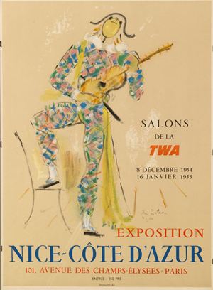 COCTEAU JEAN F 1889 - 1963 Nice - Cote d'Azur 1954 Manifesto litografico eseguito per una esposizione nelle sale della TWE a Parigi 68x50 lithographic poster