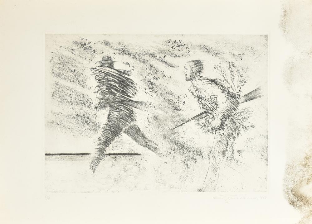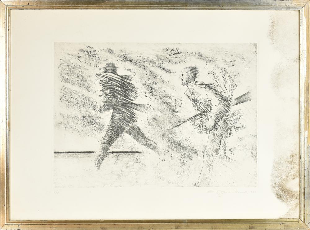 Lot 51 | Enrico Gaudino CACCIATORI incisione su carta, battuta cm 33,5x49, su foglio...