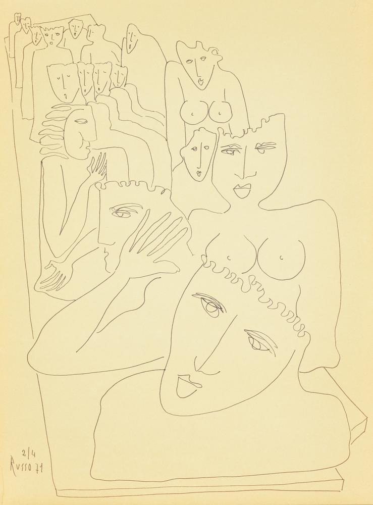 Russo NUDI E FIGURE pennarello su carta, cm 40x30 firma e data eseguito nel 1971