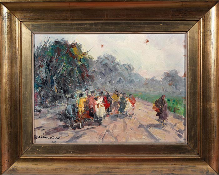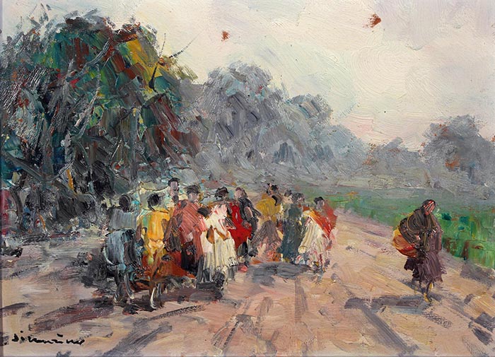 Di Marino Francesco (Napoli 1892 - 1954) Paesaggio con figure olio su tavola, cm 30x40 firmato in basso a sinistra: Di Marino