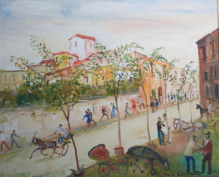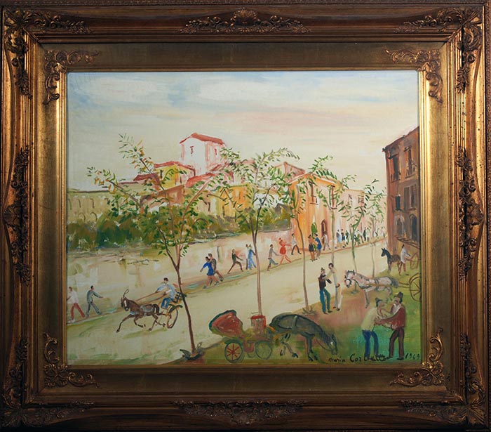 Cortiello Mario (Napoli 1907 - 1981) Paesaggio vesuviano olio su tela, cm 50x60 firmato e datato in basso a destra: Mario Cortiello 1969 a tergo firmato e dedicato