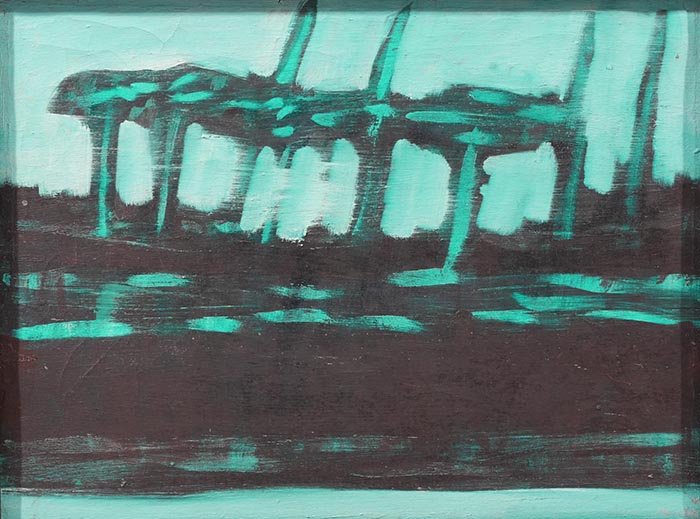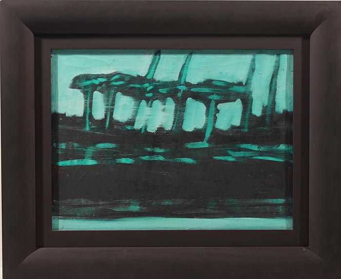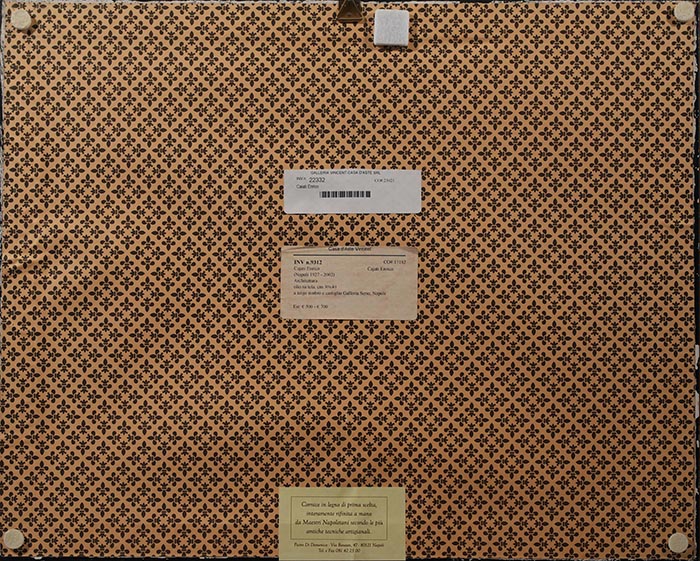 Cajati Enrico (Napoli 1927 - 2002) Architettura olio su tela, cm 30x40 a tergo timbro e cartiglio Galleria Serio, Napoli