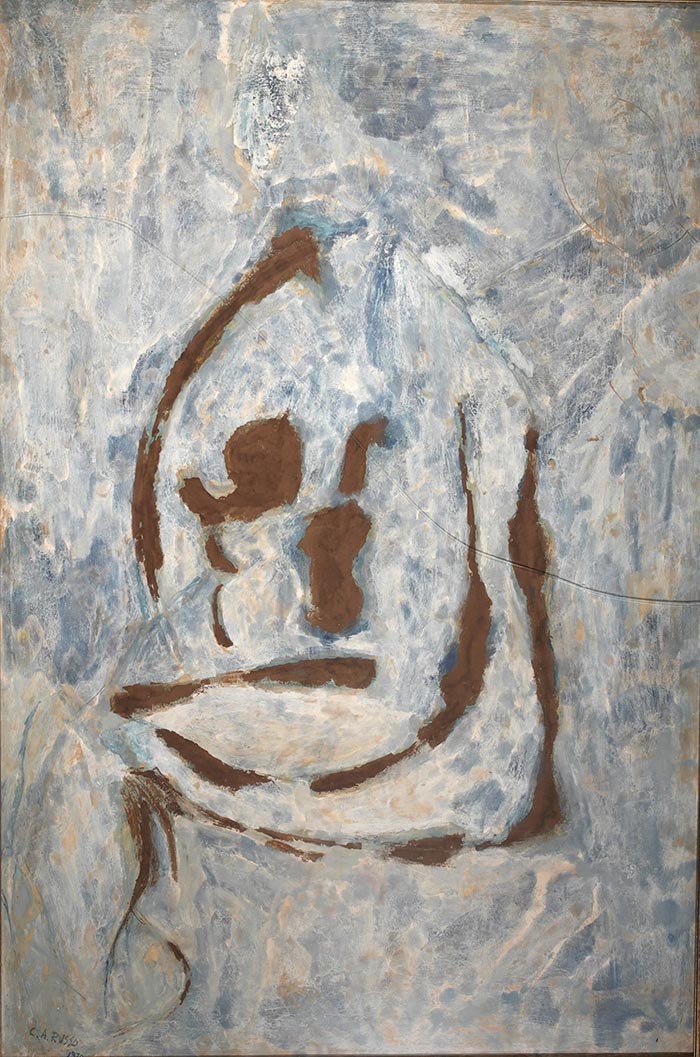 Russo Corrado (Napoli 1910 - 1981) Ciclo delle origini tempera e cera su cartone, cm 117x78 firmato e datato in basso a sinistra: C.A. Russo 1970