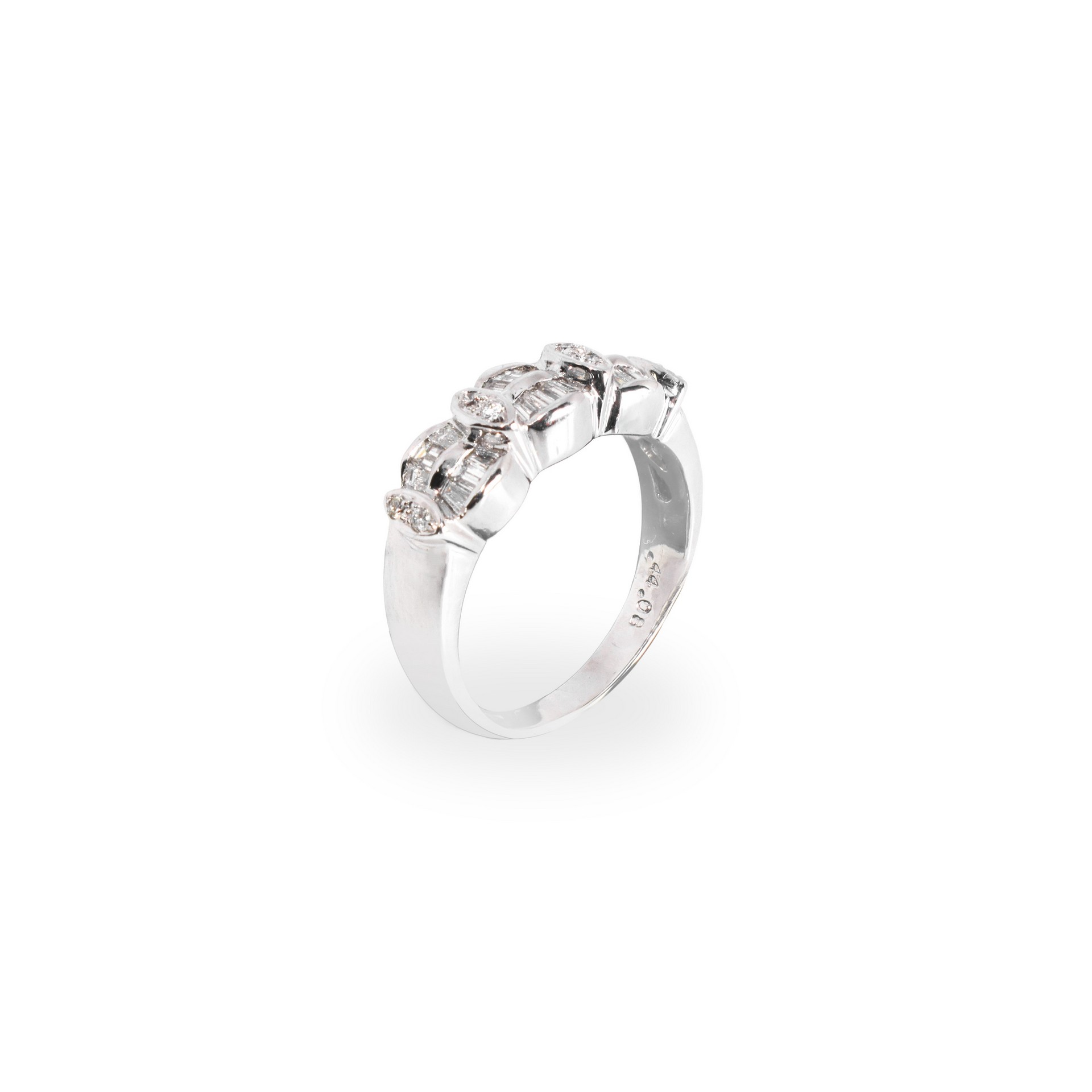 Anello in oro bianco e giallo 18 kt con diamanti taglio brillante e baguette