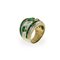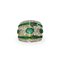 Anello in oro giallo 750 con con diamanti taglio brillante, doppia fila di smeraldi taglio carrè e tre smeraldi centrali entro ovali in oro giallo