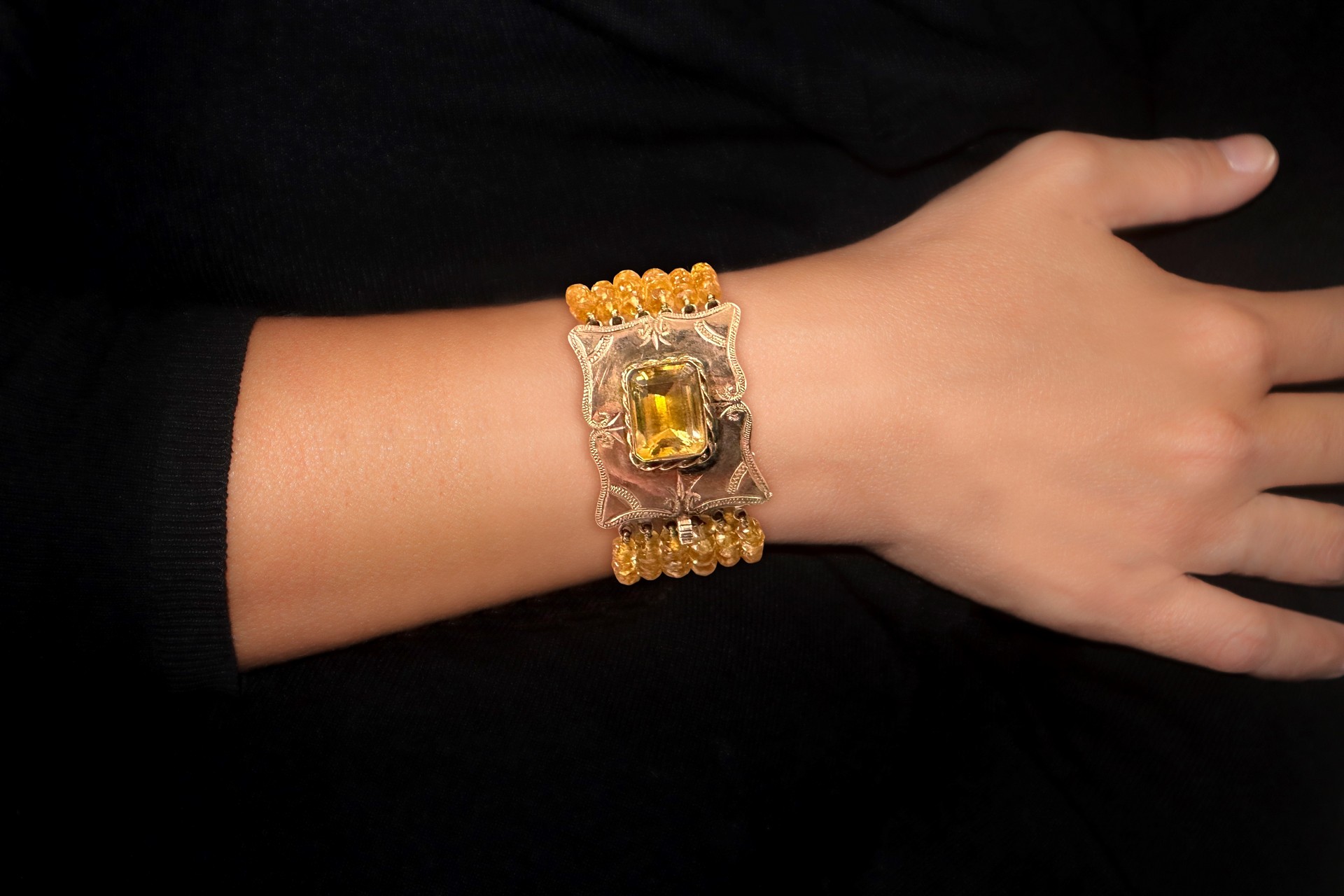 Bracciale in oro 12 carati ( 500) con quarzi citrini e topazio