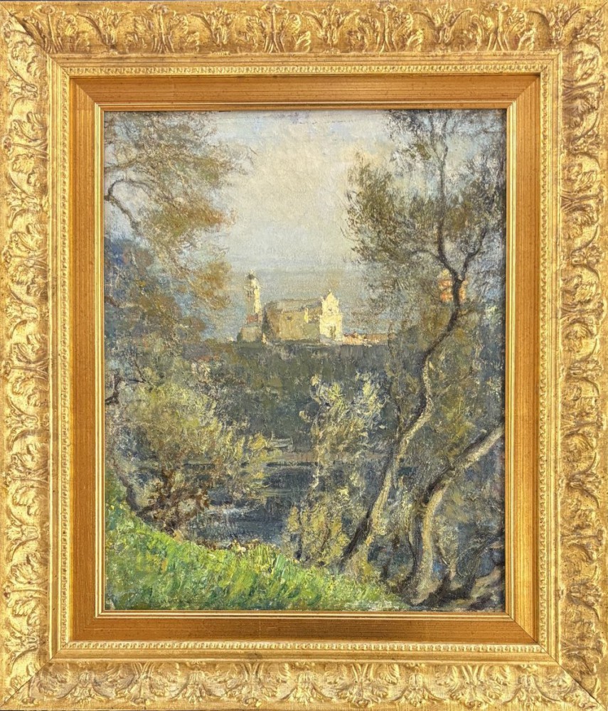 Lidio Ajmone Coggiola (bi) 1884 - Andezeno (to) 1945 Nostra signora della guardia, Varazze Olio su tela cm 45x36 firmato in basso a sx