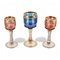 Tre calici in cristallo molato XX secolo realizzati nei toni del blu e rosso,...