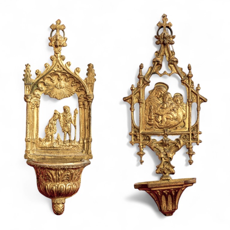 Due acquasantiere in gelamina dorata realizzate con la Madonna della Seggiola...
