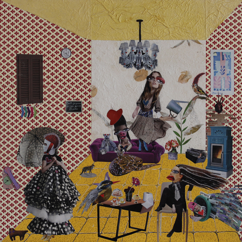 Elisa Pietrelli Terni 1987 Tutti insieme a un unico tavolo 2011 Collage su tavola 60x60