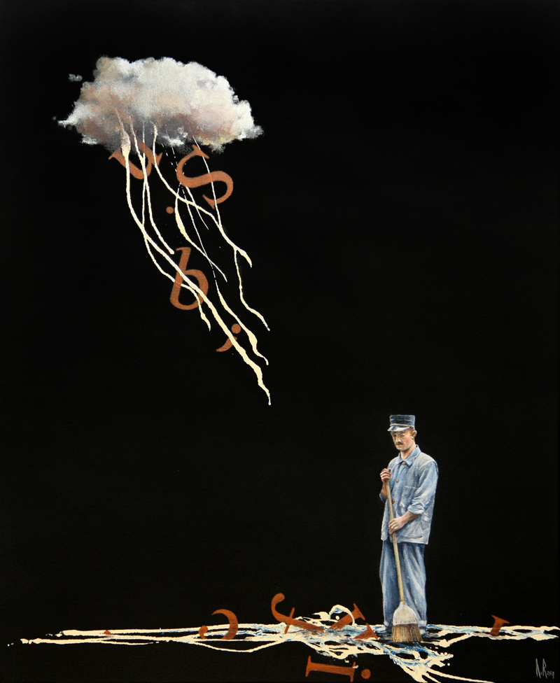Paolo Di Rosa Milano 1973 Il Raccoglitore di Foglie 2015 Acrilico su tela 57x47 Certificato di autenticità