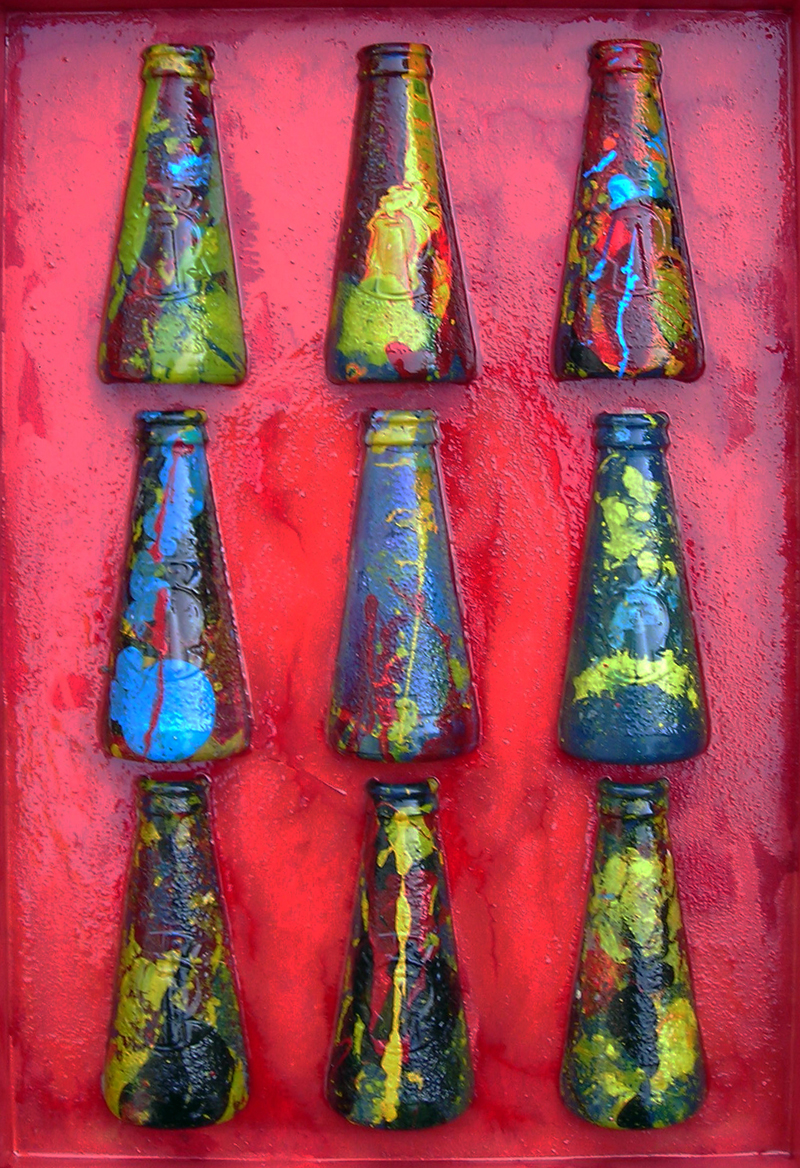 Lucio Boscardin Bassano del Grappa 1943 n. 2 composizione 9 campari 2014 Mista con resina e vetro su legno 45x31 Certificato di autenticità