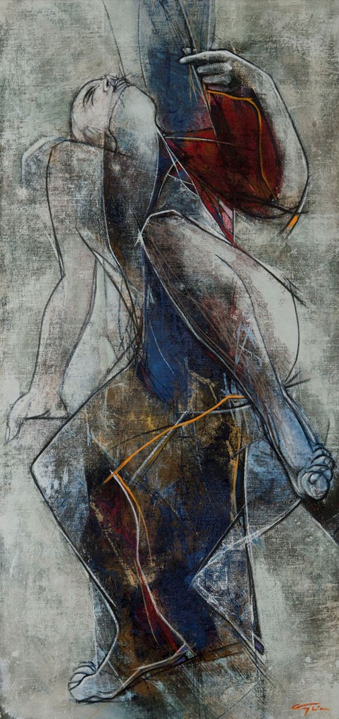 Francesco Vaglica Roma 1965 Scrutatore del cielo 2014 Olio su tela 140x65 Certificato di autenticità