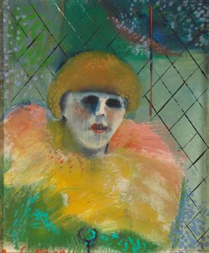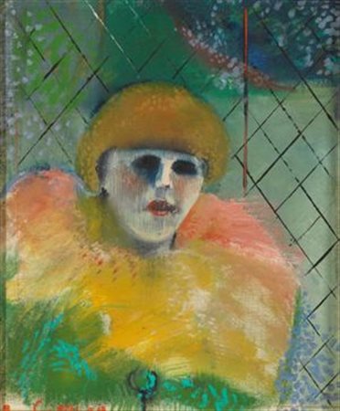 CARUSO BRUNO Palermo 1927 Figura nel giardino 1968 Olio su tela 40x30 cm Firma in basso a sinistra e al retro con data e titolo Autentica dell'artista su fotografia Già Galleria Torbandena,Trieste,etichetta al retro Timbro dell'atelier dell'artista al retro Oil on canvas Signed lower left and to the back with date and title