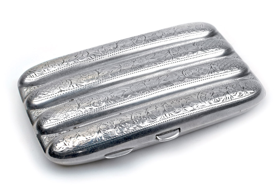 SCATOLA PORTA SIGARI IN ARGENTO Birmingham, 1913 sbalzata a motivi floreali e...