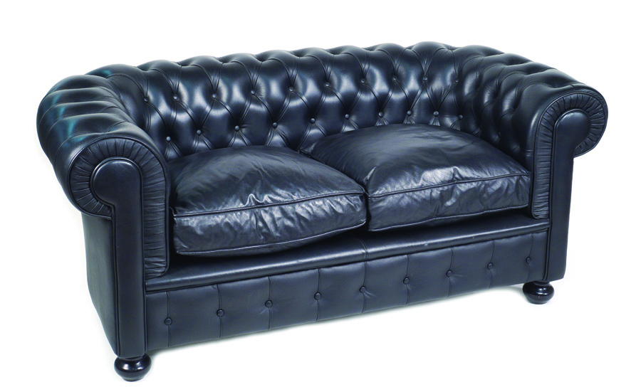 DIVANO CHESTER A DUE POSTI XX Sec. in ecopelle nera, piedini a cipolla in...