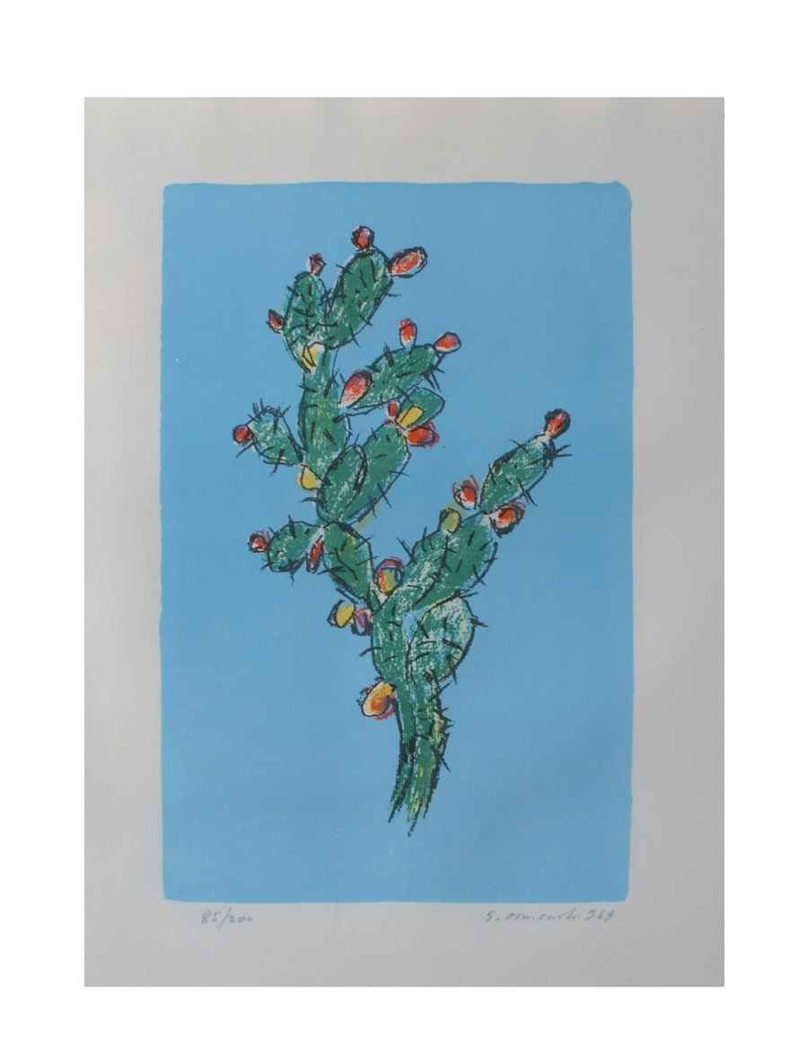 GIOVANNI OMICCIOLI Roma 1901 - 1975 "Cactus", grafica a colori es. 85/200, firmata e datata 969 in basso a destra, entro cornice 56x39 cm.