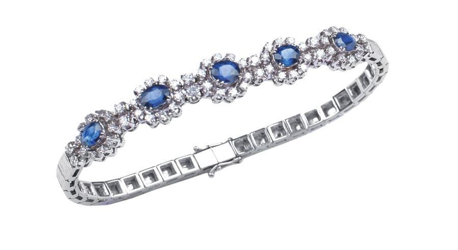 Lot 105 | BRACCIALE IN ORO BIANCO 18KT con cinque zaffiri ovali per ct 2,50 circa e...