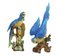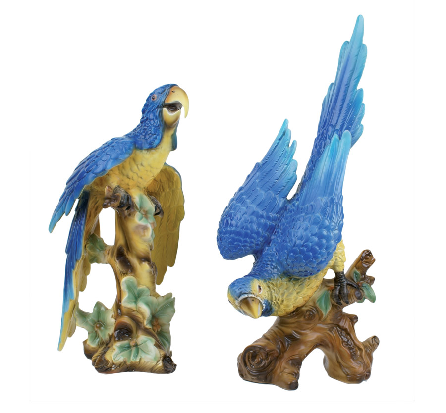 COPPIA DI PAPPAGALLI SU TRONCO Italia, metà XX Sec. in ceramica smaltata e dipinta in policromia, h. rispettivamente cm. 50 e cm. 62 (lievi difetti)
