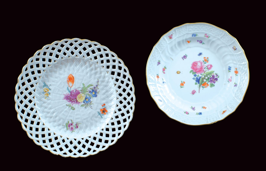 Lot 127 | DUE PIATTI IN PORCELLANA MEISSEN Germania, XIX Sec. su fondo bianco decorato...