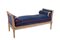 PANCHETTA IN LEGNO LACCATO ED INTAGLIATO Francia, fine XVIII inizio XIX Sec. imbottita e rivestita in tessuto, gambe troncopiramidali, restauri e usure 67x138x58 cm.