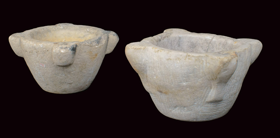 DUE MORTAI IN MARMO XVIII Sec. rispettivamente cm. 14x22xx22, cm. 13x19x19